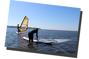Am ersten Tag lernst du wichtige Grundkenntnisse über die Windverhältnisse und die Einschätzung deines Spots. Wir zeigen dir, wie du dein Equipment vorbereitest und das Segel händelst. Hast du das Zusammenspiel von Wind, Segel und Board einmal verstanden, wirst du schnell die ersten Meter fahren und wenn alles gut funktioniert lernst du bereits am ersten Tag, wie man die Seite wechselt und mit voller Power fährt.
